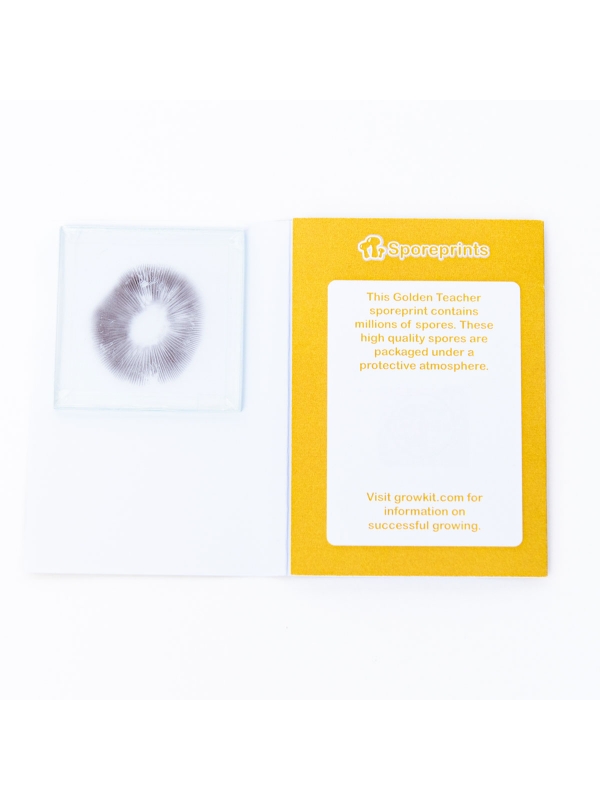 Onze Golden Teacher Sporeprint is bijzonder geschikt voor liefhebbers die graag werken volgens traditionele methoden. Elke print bevat miljoenen levensvatbare sporen, zorgvuldig verzameld om de originele genetische blauwdruk van deze iconische soort te bewaren.